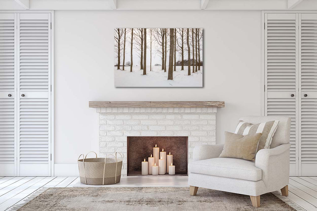 This canvas print features an original photograph captured in Parallel Trees in the snow!. It is printed on premium, high‑grade canvas and hand‑stretched over FSC‑certified wooden bars crafted by a trusted local supplier. Each print is produced using genuine Canon inks for rich colour, sharp detail, and exceptional fade resistance.